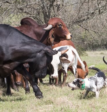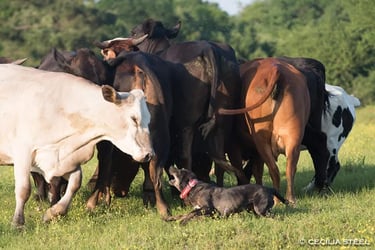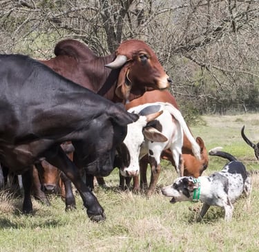 At Jelks' Brick House Farms, We raise and use working registered Catahoulas. By combining Jelks & Brick House Catahoula kennels officially in 2018, we have expanded Our efforts to increase the breeding for natural instincts of livestock working abilities, further ensuring these bloodlines retain & perform as their versatile working heritage was/is intended. Put in more lay terms, bottom, brains, heart, circle, drive, nose and old-fashioned stock dog sense is what Our bloodlines stand on.